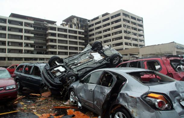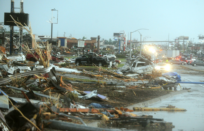 My high school, only about one mile west of my old house, was destroyed. About half a mile west of my house, only wreckage of a large grocery store remains. Mangled cars lay on their sides or in piles in the parking lot. Another half a mile to the east of my house is Range Line, Hwy 71, packed with businesses. The roof of Wal-Mart is gone. Home Depot leveled. Academy Sports in shambles.