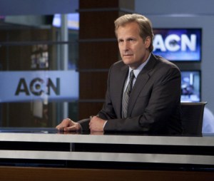 In his latest television drama, The Newsroom, Aaron Sorkin (West Wing, The Social Network) contends that this is not happening. Set in the newsroom of a nightly cable news program, a news anchor and newly hired executive producer swim against the current of corporate sponsors and commercial interests to reveal the naked truth about current events as they occur.